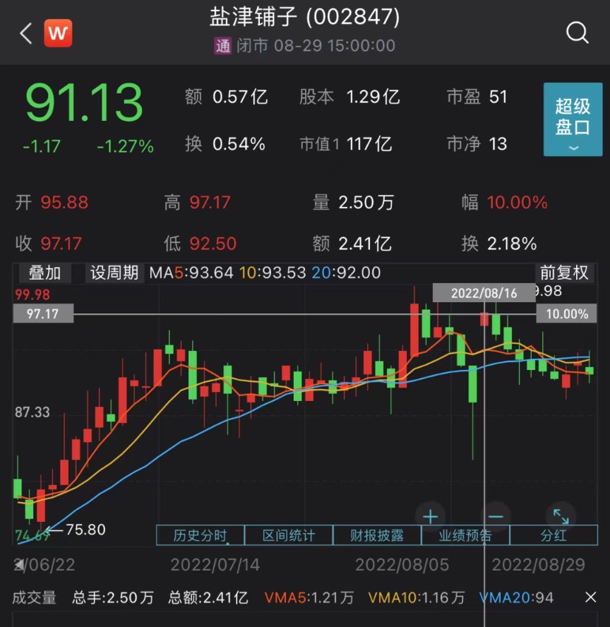 值得注意的是,鹽津鋪?zhàn)影l(fā)布三季度業(yè)績(jī)預(yù)告次日,股價(jià)實(shí)現(xiàn)漲停。