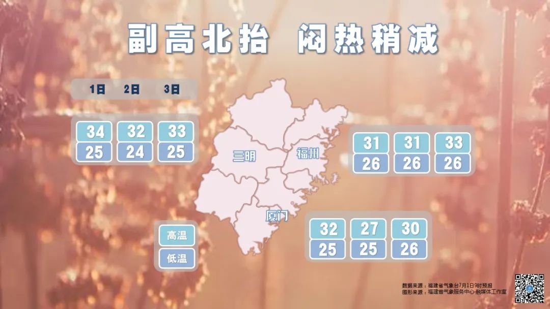 據(jù)氣象部門預(yù)報(bào),2日夜里到3日白天,福建南部地區(qū)有大雨到暴雨;3日夜里到4日白天,福建全省有陣雨或雷陣雨。而氣溫方面,近日福建省白天最高氣溫有所回落,大部分縣市在31~34℃,與前些天相比悶熱稍減。提醒公眾出行時(shí)做好防暑降溫工作,多補(bǔ)充水分。