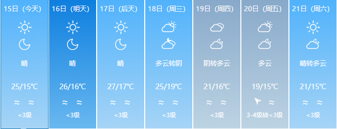 臺(tái)海網(wǎng)12月16日訊 據(jù)泉州網(wǎng)報(bào)道 冷空氣“休假”的這些天,我市一路回暖,冬日暖陽(yáng)成為天氣舞臺(tái)的主角。昨日午后我市最高溫普遍在24℃—26℃,讓人感覺(jué)暖意融融,適合洗曬衣被或外出游玩。 今天氣溫上升更為明顯。受西南氣流影響,預(yù)計(jì)今明兩天我市上空濕度略有加大,云系稍有增多,以多云天氣為主,夜晨時(shí)分溫度仍然較低,山區(qū)清晨將被霧氣縈繞,提醒司機(jī)朋友們注意...