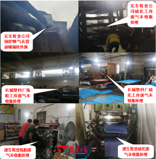 福州市倉(cāng)山區(qū)分布大量塑膠加工行業(yè),因臭氣擾民問題周邊群眾時(shí)有投訴,倉(cāng)山區(qū)城門鎮(zhèn)政府雖然于2019年開始對(duì)臚廈工業(yè)區(qū)塑膠行業(yè)環(huán)境問題開展綜合整治,取得階段性成效,群眾投訴明顯下降,但仍存在整治不平衡,成效鞏固不到位等問題。8月11日,省生態(tài)環(huán)境廳執(zhí)法人員現(xiàn)場(chǎng)隨機(jī)抽查了臚廈工業(yè)區(qū)內(nèi)福州建生鞋業(yè)有限公司、福州宏?yáng)|鞋業(yè)有限公司、福州市倉(cāng)山臚廈長(zhǎng)城塑料廠3家塑膠加工企業(yè),其中,宏?yáng)|鞋業(yè)公司因鍋爐煙氣管道破漏,導(dǎo)致部分廢氣從管道破漏處外逸;宏?yáng)|鞋業(yè)公司、建生鞋業(yè)公司和長(zhǎng)城塑料廠的煉膠、硫化等工序產(chǎn)生的廢氣未收集處理,通過(guò)排氣扇或敞開的門窗直接外排,車間內(nèi)及周邊異味較重。