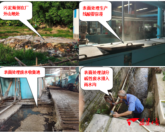 企業(yè)位于南靖縣金山鎮(zhèn)東建村金馳金屬制品有限公司內(nèi),主要從事金屬焊絲生產(chǎn),因臭味擾民問題被群眾投訴。8月13日,省生態(tài)環(huán)境廳執(zhí)法人員現(xiàn)場(chǎng)檢查發(fā)現(xiàn),企業(yè)表面處理工段產(chǎn)生的污泥傾倒在廠外山地處,滲濾液呈堿性;表面處理生產(chǎn)線未密閉,廢氣收集效率較低,酸霧四處彌漫,且酸霧處理設(shè)施未加堿處理;表面處理車間部分堿性廢水排入雨水溝。