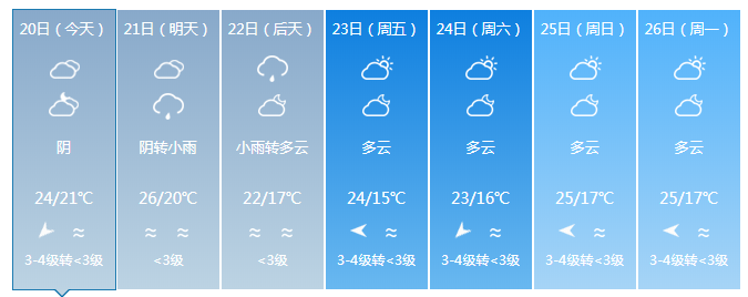 21日,全省陰天到多云,寧德、福州、平潭、莆田和南平、三明、泉州的局部有小雨。