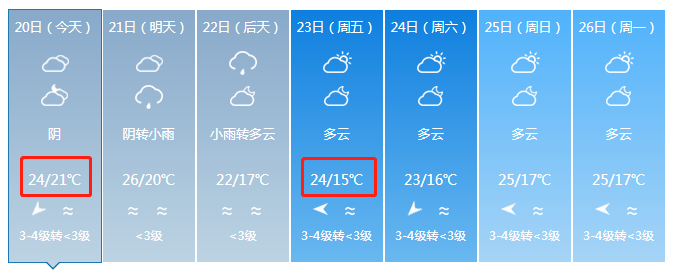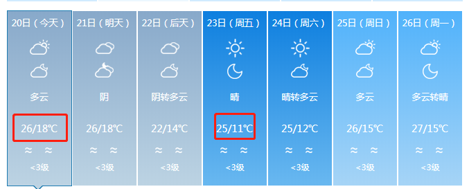 根據(jù)預(yù)測(cè),南平23日當(dāng)天一天氣溫能相差14℃。