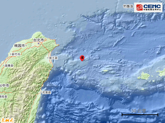 中國地震臺網(wǎng)正式測定:02月07日01時36分在臺灣宜蘭縣海域(北緯24.65度,東經(jīng)122.50度)發(fā)生5.2級地震,震源深度70千米。