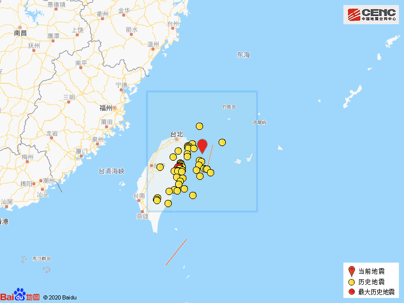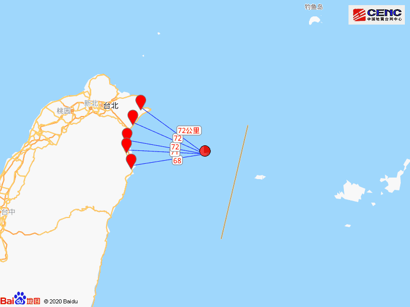 周邊縣城:震中距蘇澳鎮(zhèn)68公里、距五結(jié)鄉(xiāng)71公里、距壯圍鄉(xiāng)72公里、距頭城鎮(zhèn)72公里、距貢寮區(qū)72公里,距宜蘭縣76公里,距臺北市108公里。