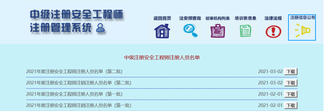 2021年中級(jí)注冊安全工程師注冊人員名單