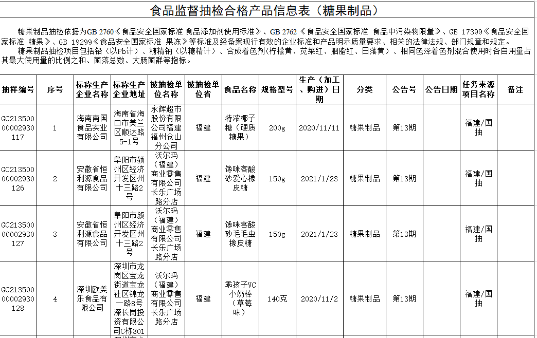 臺海網(wǎng)4月16日訊 福建市場監(jiān)管15日下午發(fā)布最新抽檢報告,第13期公告的監(jiān)督抽檢信息涉及8大類食品33批次,包括:糧食加工品、食用油(含油脂及其制品)、薯類和膨化食品、糖果制品、茶葉及相關(guān)制品、水果制品、餐飲食品、食用農(nóng)產(chǎn)品,合格33批次。