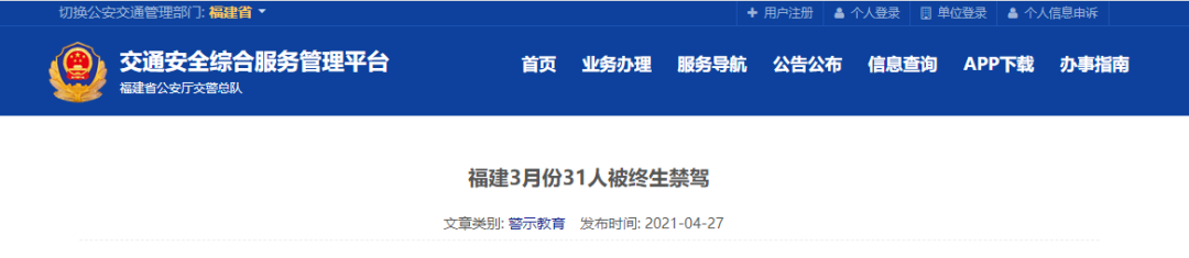 福建省內(nèi)終生禁駕人員名單
