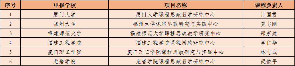 課程思政教學(xué)研究示范中心立項名單