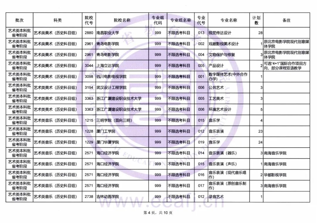 今年我省藝術類本科批省考階段仍有缺額計劃須進行征求志愿(具體附后)。