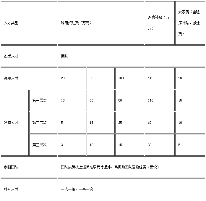 3.除享受學(xué)校同級(jí)同類(lèi)人員工資福利等待遇外,還可享受購(gòu)房補(bǔ)貼、安家費(fèi)、科研資助費(fèi)等,標(biāo)準(zhǔn)如下(單位:人民幣,稅前):