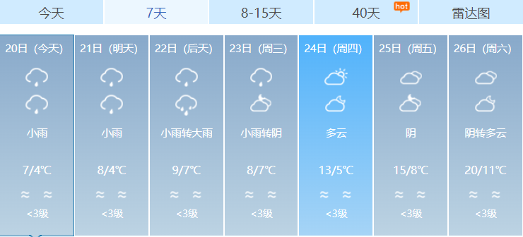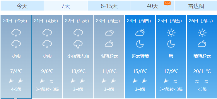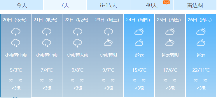 20日,全省有小到中雨,南部地區(qū)部分大雨,其中中北部山區(qū)部分有小雪、雨夾雪或凍雨,部分山區(qū)路段將出現(xiàn)道路結(jié)冰。