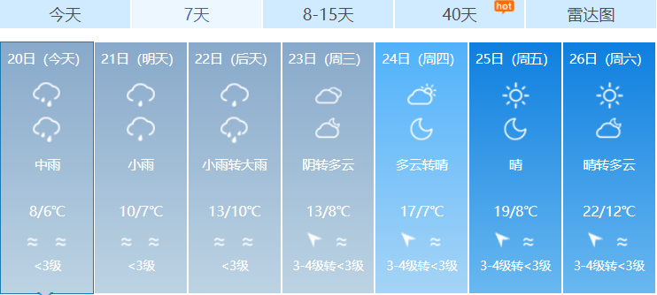 22日,全省陰有小到中雨,沿海和南部地區(qū)局部大雨,氣溫略有回升。