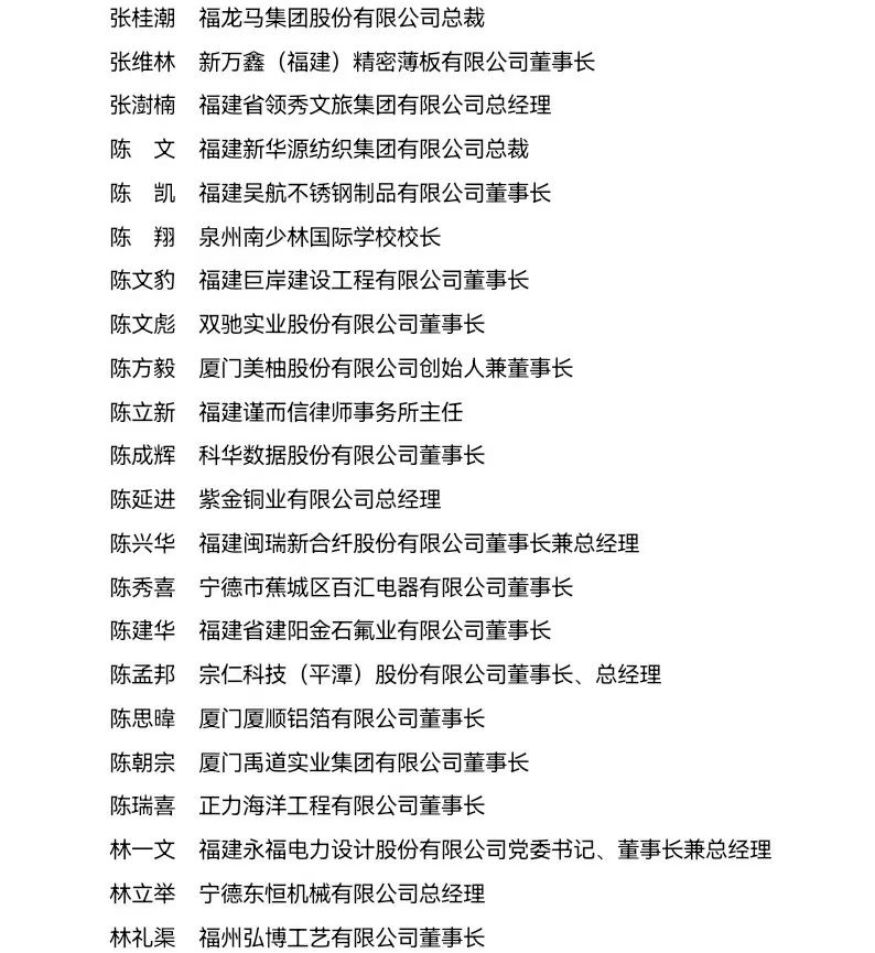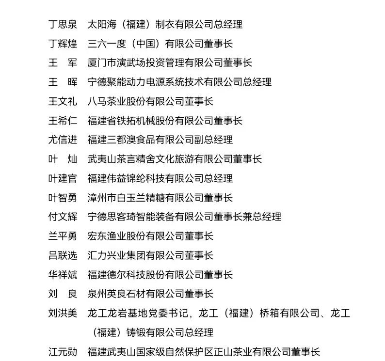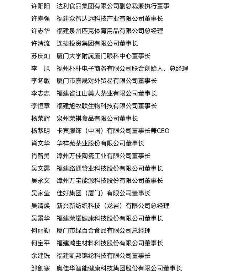 “福建省非公有制經(jīng)濟(jì)優(yōu)秀建設(shè)者”表彰名單