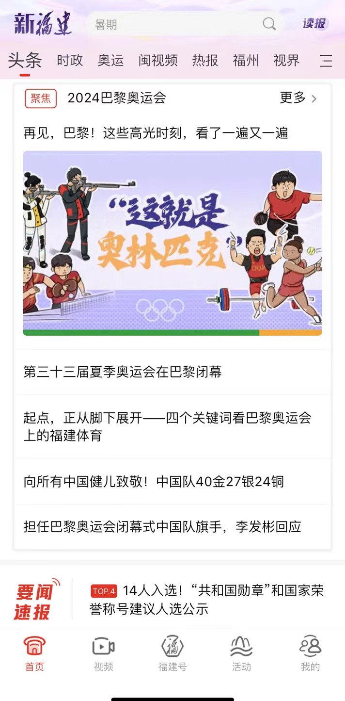 巴黎奧運會期間,新福建客戶端以“全媒體+”的思維,構建了奧運資訊矩陣。