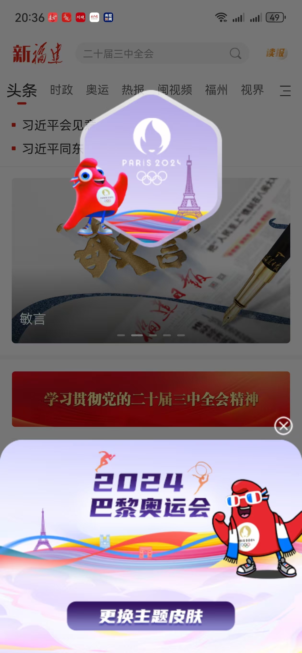 7月26日,新福建客戶端上線“奧運”主題皮膚,整套主題皮膚包括首頁彈窗提醒、客戶端字體顏色和背景圖,均融合本次巴黎奧運會的主視覺設計,淡淡的“薰衣草紫”色調讓人眼前一亮,仿佛置身法國法蘭西體育場,體驗一把紫色跑道飛奔的感覺。
