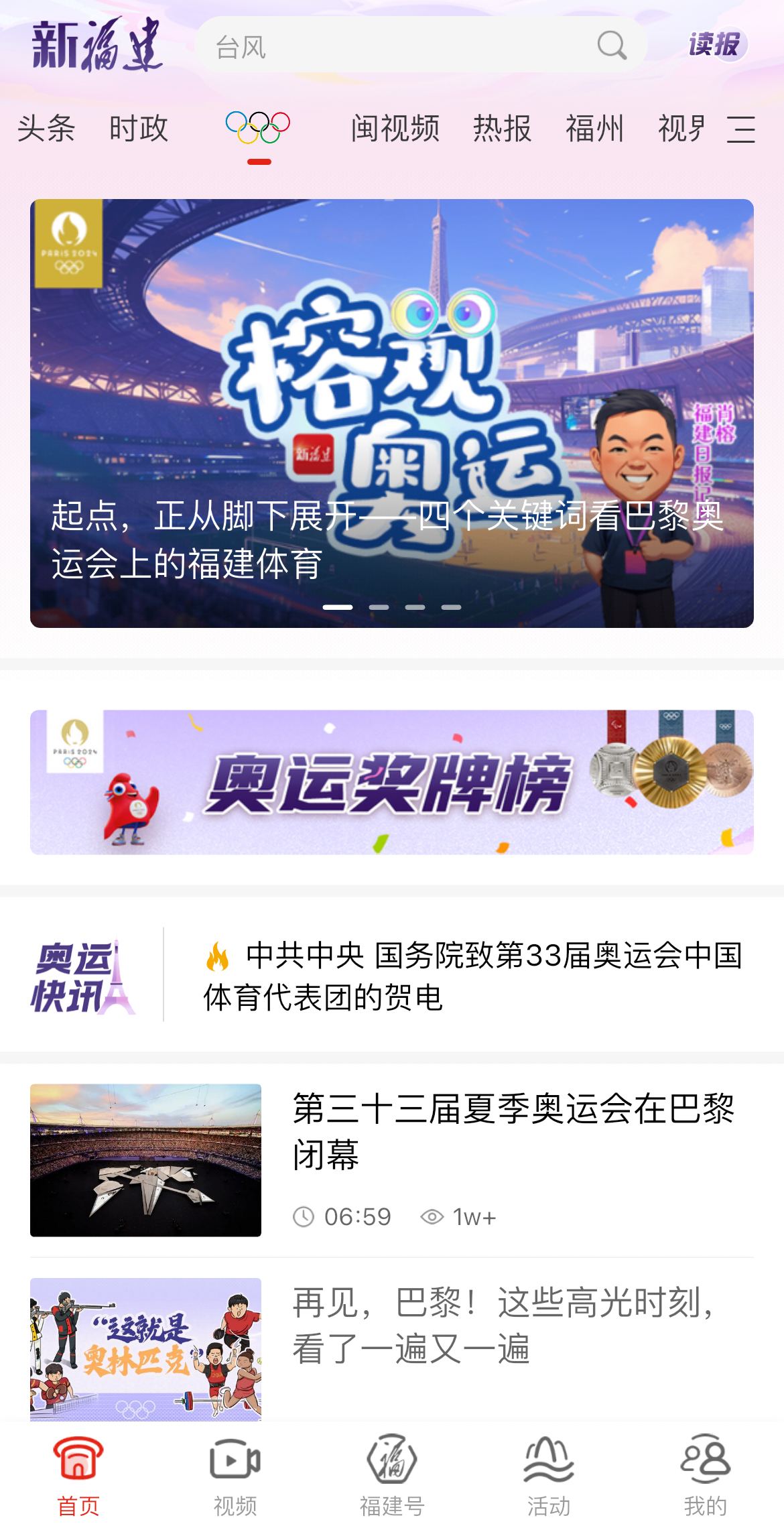7月26日,在巴黎奧運會正式開幕后,新福建客戶端頭條頻道及時推出2024巴黎奧運會卡片,集納奧運相關內容,在頭條頻道突出奧運報道,讓用戶打開新福建客戶端便可在第一時間掌握奧運動態(tài),感受奧運激情。