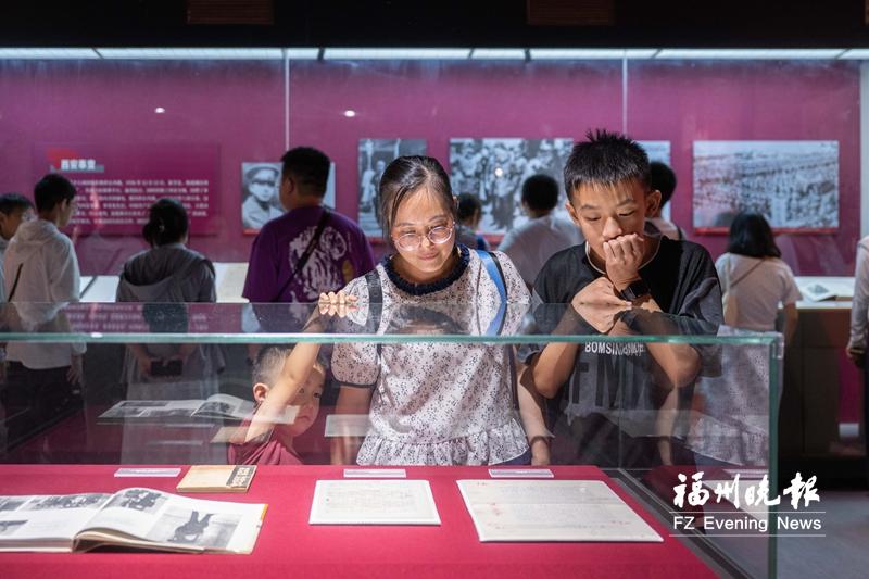“永不磨滅的記憶——福建省紀(jì)念中國人民抗日戰(zhàn)爭暨世界反法西斯戰(zhàn)爭勝利80周年文獻(xiàn)展”15日在福建博物院開展,吸引了不少觀眾。許多市民帶著孩子來接受愛國主義教育。
