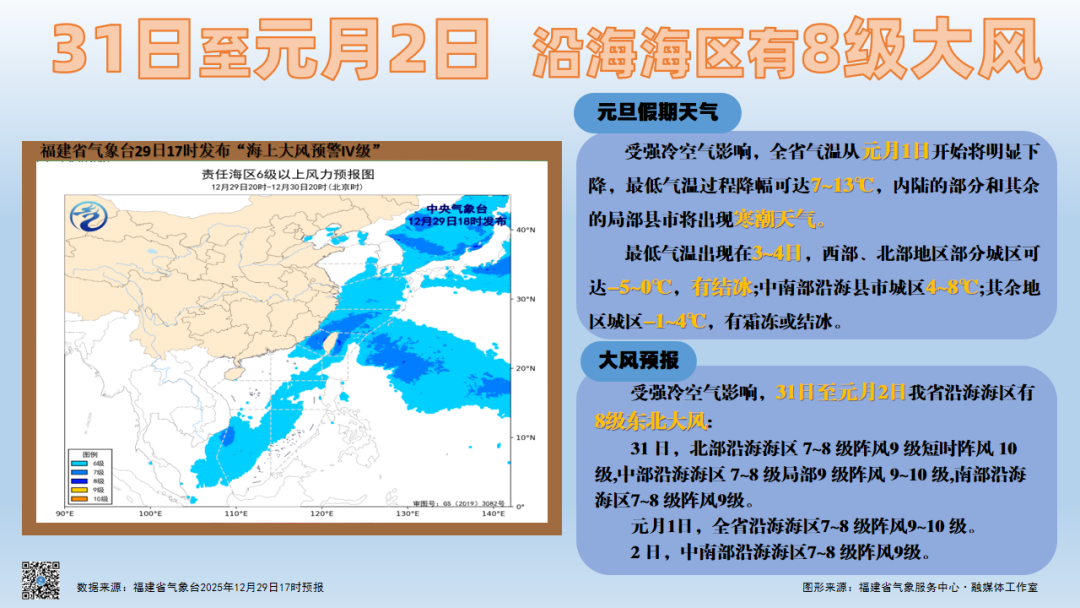 元月1日,全省沿海海區(qū)7~8級(jí)陣風(fēng)9~10級(jí)。
