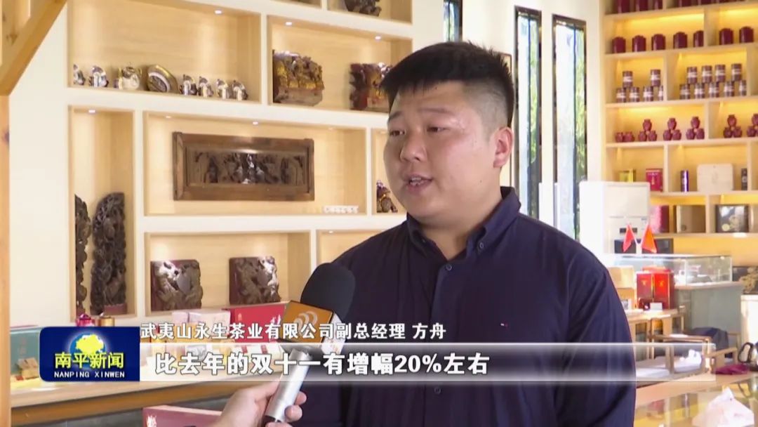 武夷山永生茶業(yè)有限公司副總經(jīng)理 方舟:雙十一活動,我們也把我們的一些特色的產(chǎn)品,特色的服務(wù),超優(yōu)惠的價值,在雙十一上帶給我們的消費者,整體的表現(xiàn)是特別的好,比去年的雙十一有增幅20%左右。