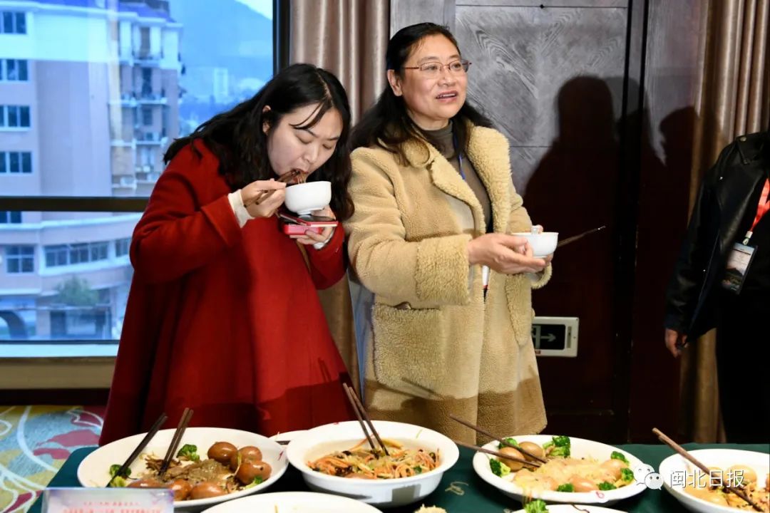 色香味俱全的一道道美食,引得眾人食指大動,亦令人大飽口福。“能夠?qū)⒚袼撞穗茸龅?lsquo;色鮮、香濃、味美、形佳’確實不易。”慕名而來的觀眾發(fā)出了連連贊許聲,他們表示這些菜肴都是過去各大宴席中必備的八大菜,但是由于年代久遠(yuǎn),慢慢地淡出了年輕一代的視線。此次活動的舉辦,對推介松溪鄉(xiāng)村民俗美食,傳承與展現(xiàn)地方特色具有重要意義。