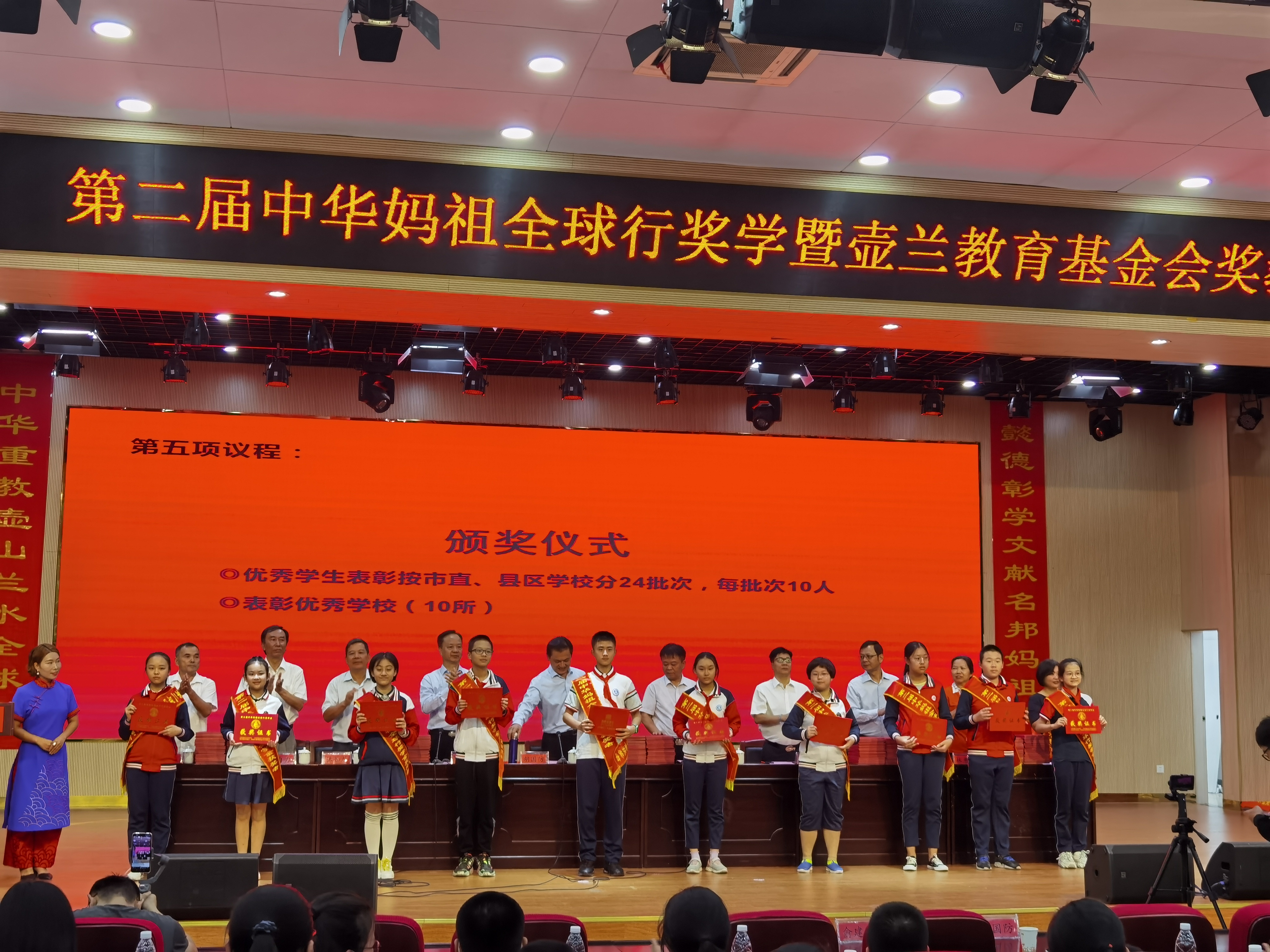 據(jù)悉,中華媽祖全球行獎學(xué)金,是由中華媽祖文化交流協(xié)會牽頭,莆田全球行國際黃金珠寶文化交流有限公司董事長陳玉彬于2019年8月發(fā)起創(chuàng)立,專用于獎勵福建莆田市小學(xué)六年級德智體美勞全面發(fā)展的優(yōu)秀學(xué)生。每年獎勵一次,每次200名。莆田市教育局、莆田市壺蘭教育基金會每年秋季組織實施。媽祖獎學(xué),功在當代,德披千秋。(來源:新福建 記者 林愛玲)