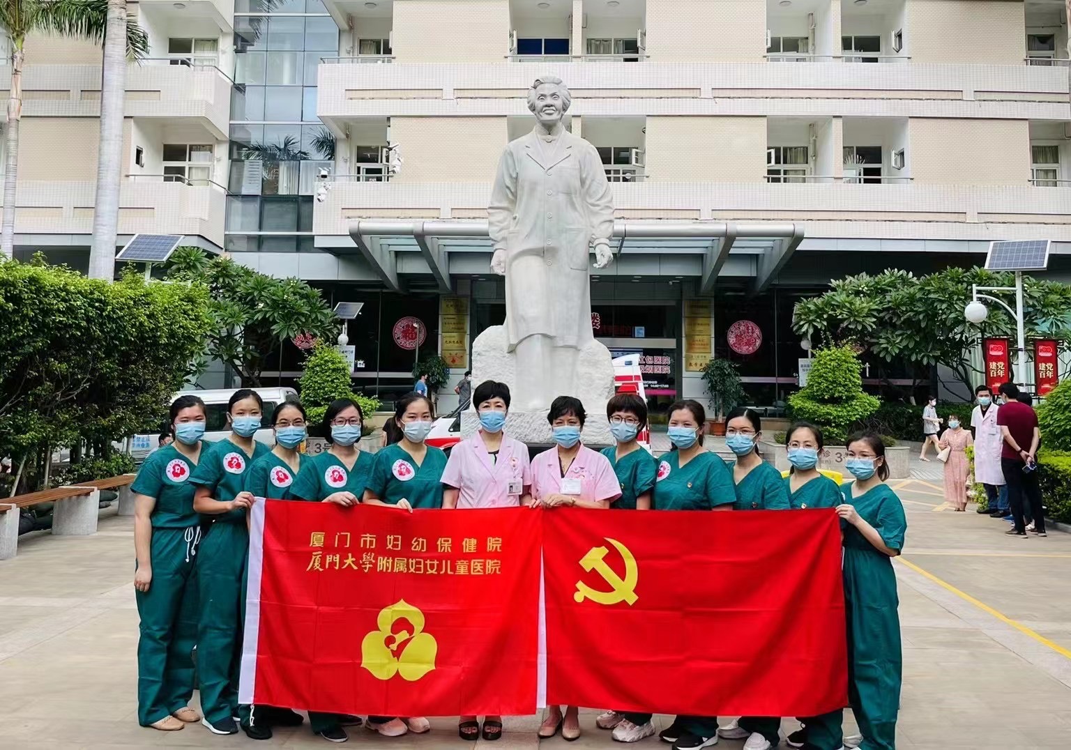 黨員率先示范,戴上黨徽,在林巧稚雕像下動(dòng)員,廈門市婦幼保健院的支援隊(duì)伍準(zhǔn)備好,即刻出發(fā)。