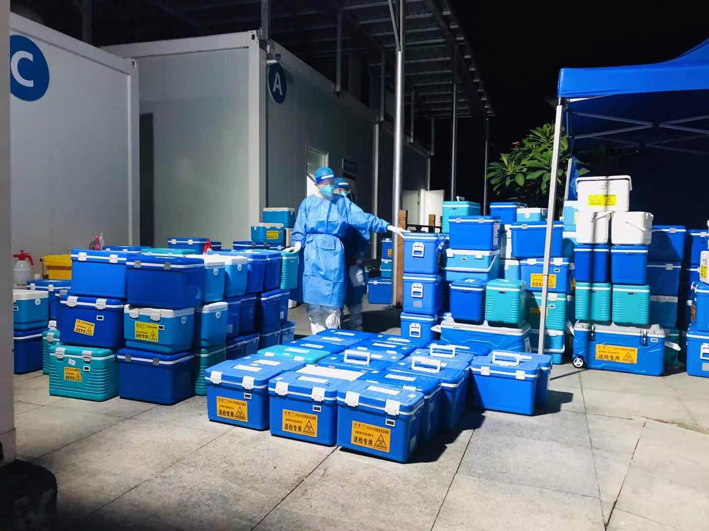 9月25日,黃忠福把楓亭鎮(zhèn)第十二輪核酸檢測(cè)樣本送至莆田博奧方艙實(shí)驗(yàn)室,已經(jīng)是凌晨4點(diǎn)鐘。“樣本要盡量在2小時(shí)內(nèi)送達(dá)方艙實(shí)驗(yàn)室,我們每天要往返仙游5、6趟,根據(jù)上級(jí)指示把樣本送到莆田、仙游、北高等地的方艙實(shí)驗(yàn)室。”黃忠福告訴記者,每日發(fā)車時(shí)間不固定、運(yùn)送地點(diǎn)不固定,他和搭檔早早就穿戴整齊待命,接到指令即刻出發(fā),保證核酸檢測(cè)樣本及時(shí)安全送達(dá),早出晚歸已是常態(tài),基本上都要忙到四五點(diǎn)甚至天亮。