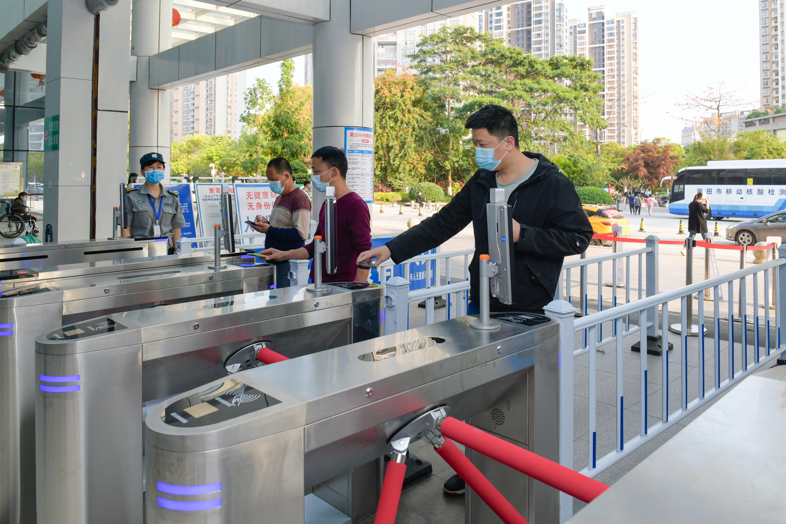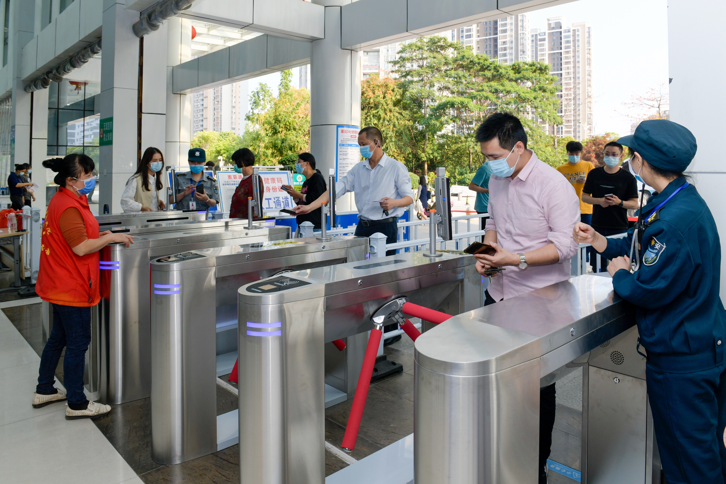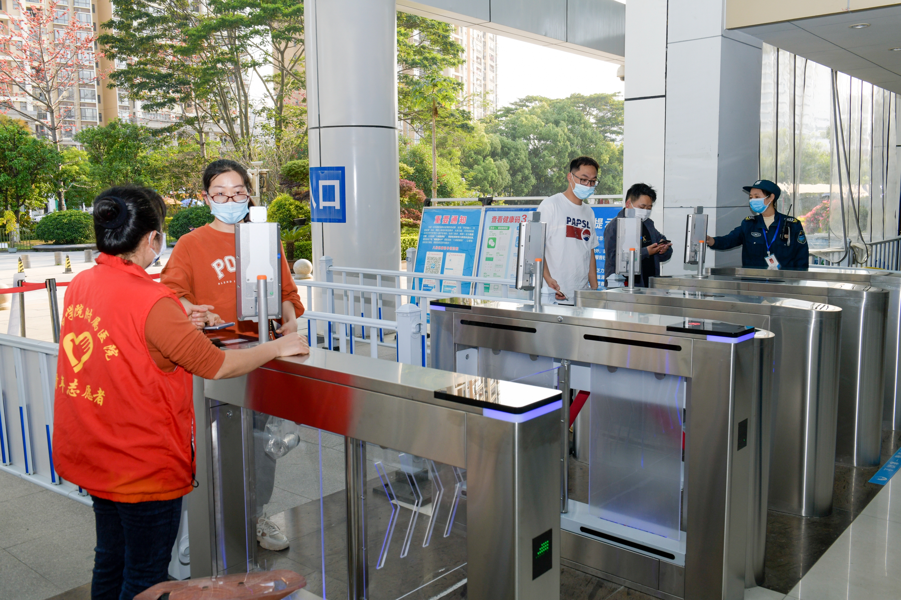 “口罩戴好,一米間隔,有序排隊(duì),提前準(zhǔn)備好身份證或健康碼,可以走快捷通道……”上午10時(shí)許,在莆田學(xué)院附屬醫(yī)院新區(qū)門診入口處,多名志愿者和安保人員正在這里執(zhí)勤,引導(dǎo)市民通過(guò)智能閘機(jī)通道有序進(jìn)入院區(qū)。智能閘機(jī)系統(tǒng)最快1秒鐘內(nèi)就能完成自動(dòng)識(shí)別,綠碼開(kāi)閘放行,黃碼、紅碼提示禁行。