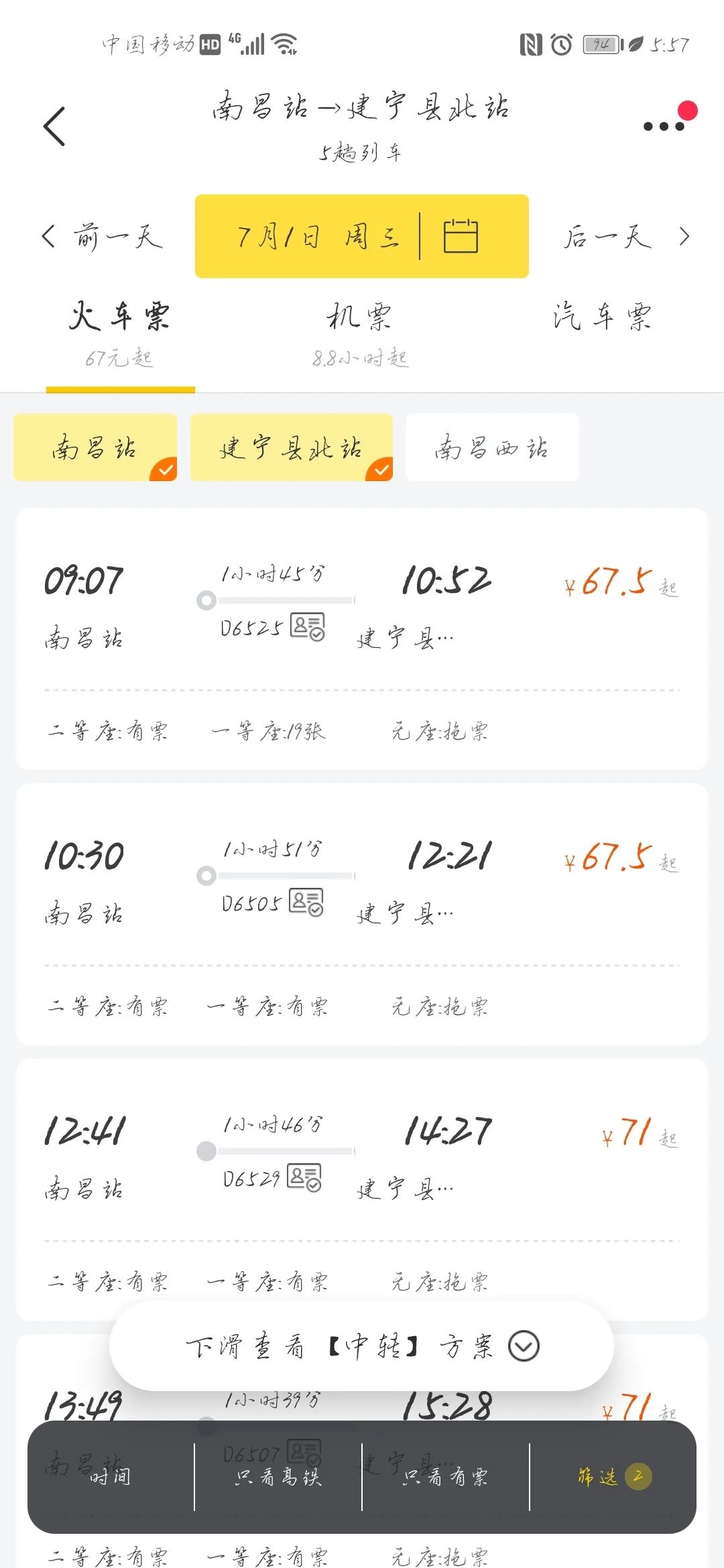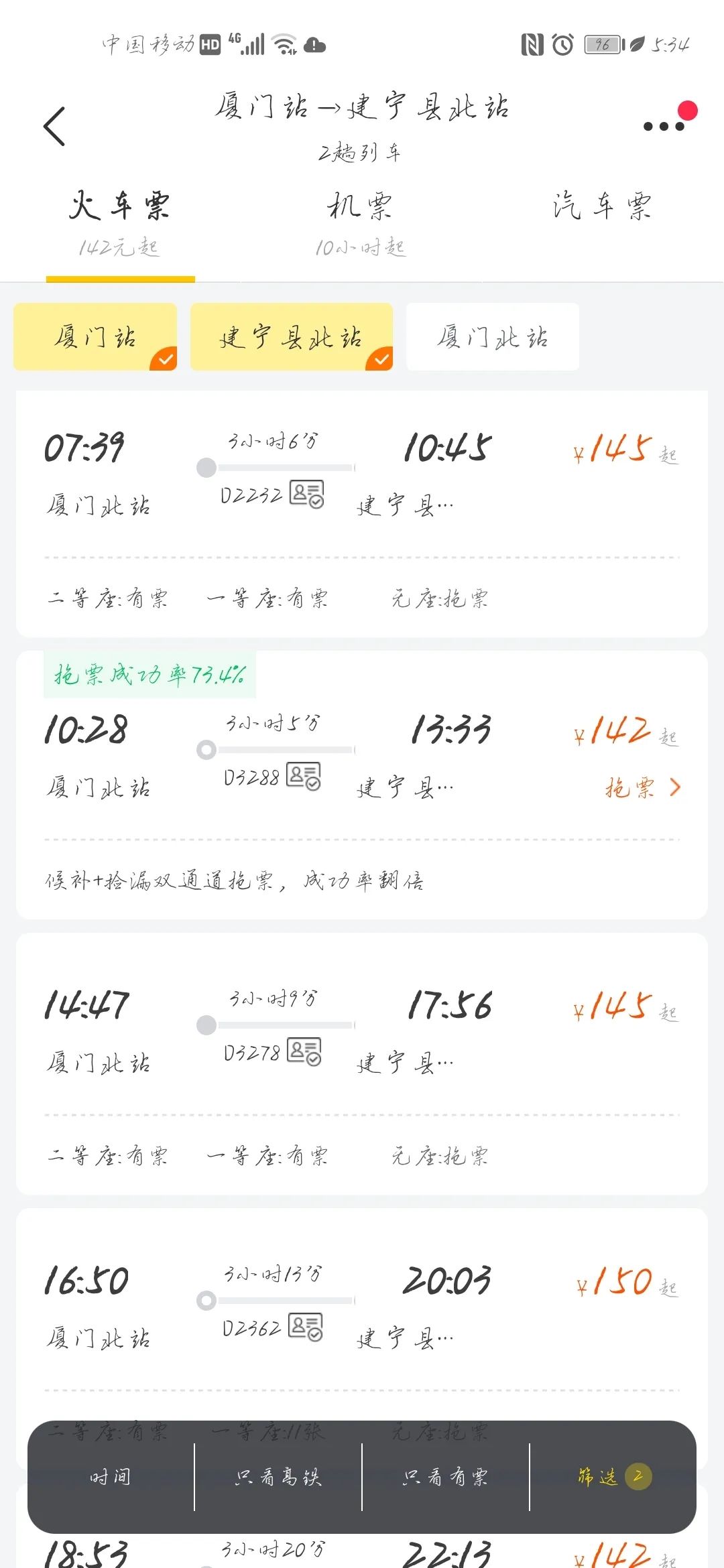 示例:廈門到建寧縣北10:45、南昌到建寧縣北10:52