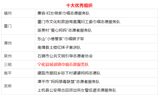 福建省新時(shí)代巾幗志愿服務(wù)工作征集展示結(jié)果揭曉名單