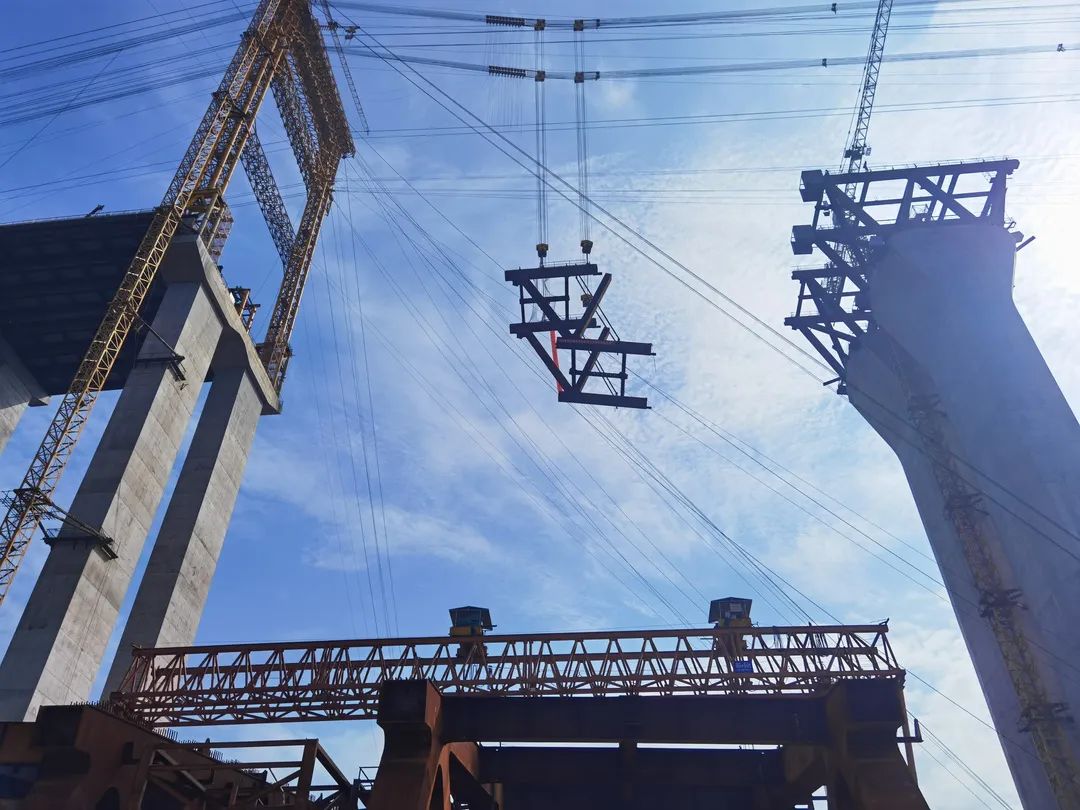 為確保沙溪大橋年底通車,中交二航局四公司項(xiàng)目部與設(shè)計(jì)、監(jiān)控等單位緊密配合、精心組織、倒排工期,充分發(fā)揮黨支部戰(zhàn)斗堡壘作用和黨員先鋒模范作用,大橋主橋鋼梁節(jié)段吊裝施工正穩(wěn)步推進(jìn)。