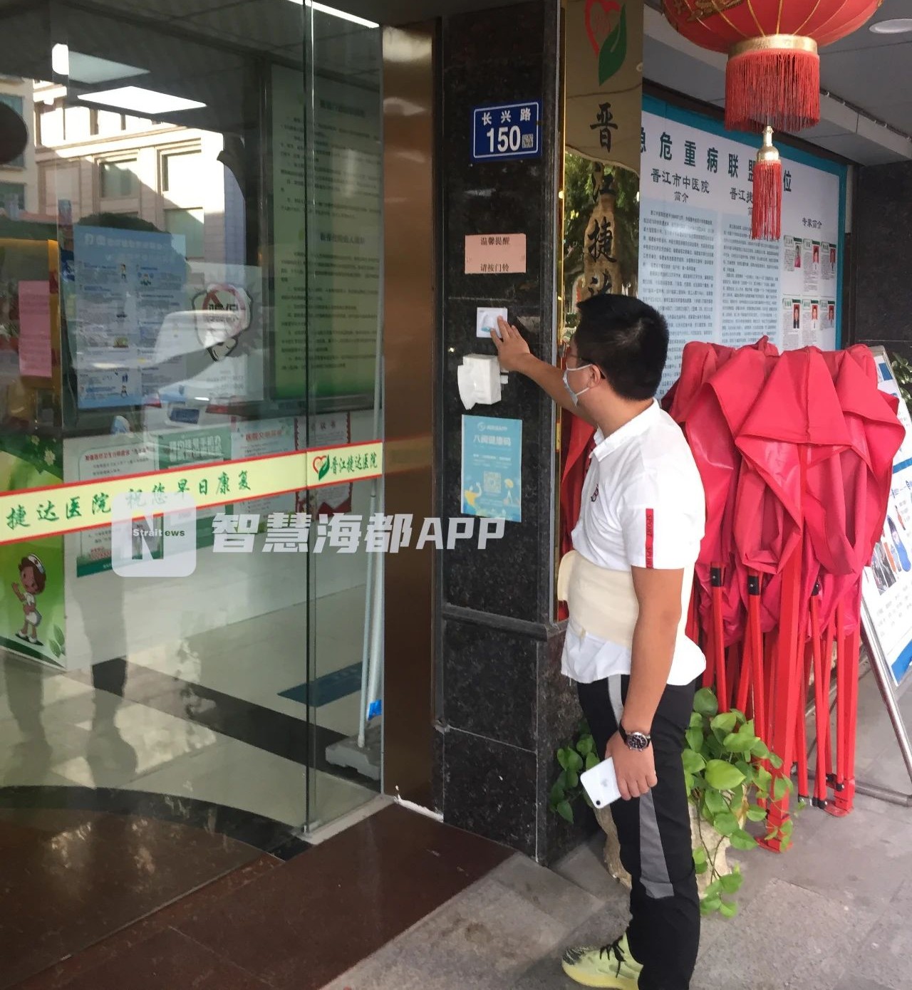 昨天下午3時(shí)許,海都記者來到晉江捷達(dá)醫(yī)院,醫(yī)院門口位置導(dǎo)診臺有工作人員,但不管記者按門鈴還是敲門,工作人員都不開門,隨后人還走開了。