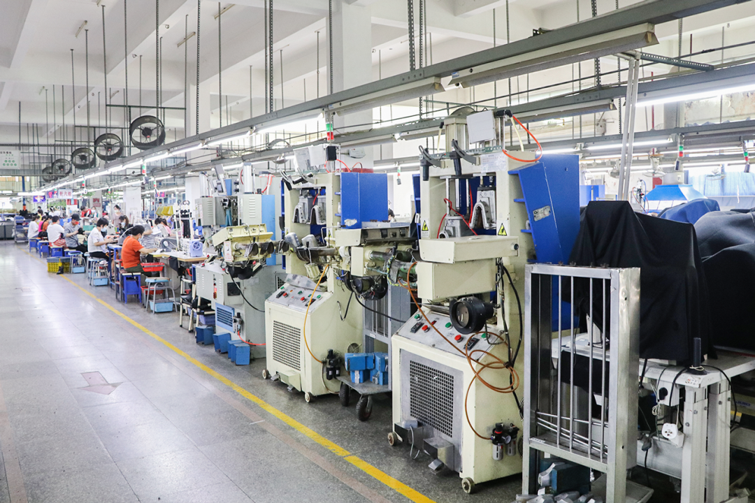 筆者在福建和誠(chéng)鞋業(yè)有限公司看到,生產(chǎn)車(chē)間里成排的機(jī)器正在高速運(yùn)轉(zhuǎn)著,工人們?cè)诟鱾€(gè)機(jī)臺(tái)間熟練地進(jìn)行操作。車(chē)間負(fù)責(zé)人來(lái)回巡查,檢查各條生產(chǎn)線(xiàn)運(yùn)轉(zhuǎn)情況,并提醒員工戴好口罩。