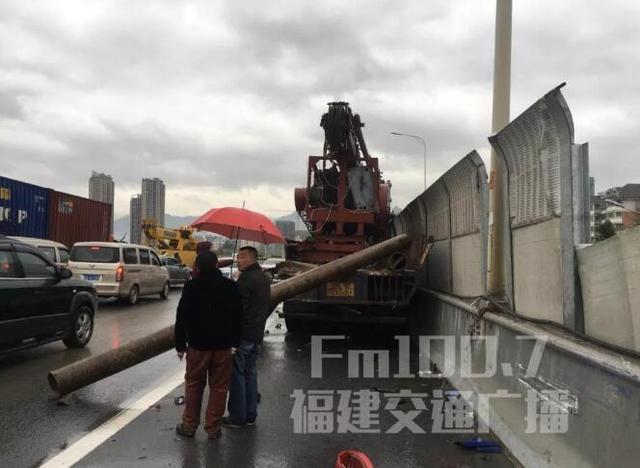 鋼管甩到邊上,把隔音墻都撞壞好幾塊。