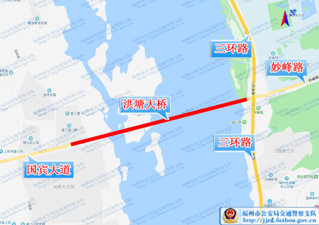 二、2020年10月17日至2020年12月28日,周末時段(周六、周天全天,周一0時至6時),對洪塘大橋?qū)嵤┡R時交通管制,禁止車輛及行人通行。