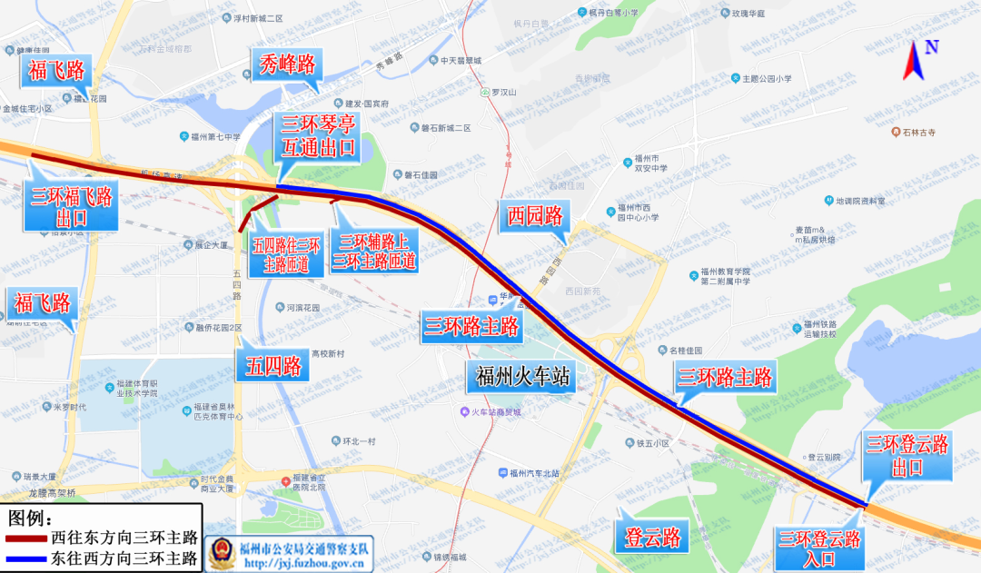 因火車站周邊道路提升(站東互通)工程橋梁吊裝施工需要,決定施工期間臨時交通管制日期延長至11月30日,每日凌晨0時至6時,根據(jù)施工進度視情對西往東方向三環(huán)主路(西起三環(huán)路福飛路出口,東至三環(huán)路登云路入口)和東往西方向三環(huán)主路(東起三環(huán)路登云路出口,西至三環(huán)路琴亭互通出口)實施臨時交通管制,禁止機動車通行。