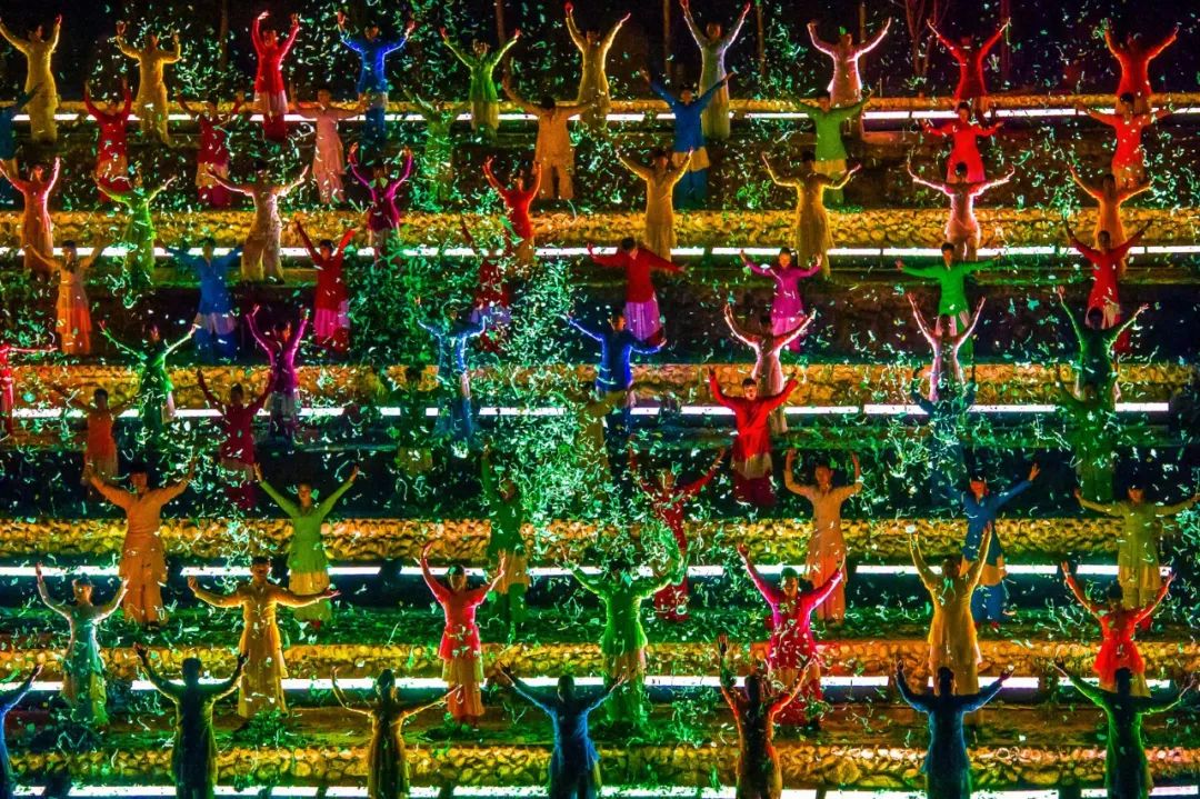 《印象大紅袍》是展示中國茶文化的山水實(shí)景演出,采用全球首創(chuàng)360°旋轉(zhuǎn)觀眾席,被稱為世界上第一座山水環(huán)景劇場。在光與影的變幻中,真真切切地體驗(yàn)武夷山水一壺茶的無限魅力。