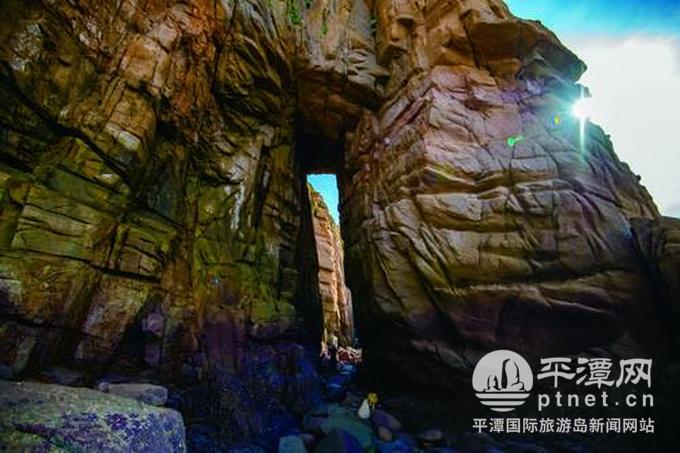 漁限村后澳東岸至月舉村嶺下澳,是平潭最美的基巖海岸帶之一,也是最長(zhǎng)最壯美的可徒步通行的斷崖絕壁海岸帶,“通天門”也正位于此處。全岸遍布大小不一、形色各異的鵝卵石,在沾水未曬干時(shí),光澤特別使人賞心悅目。而其拐彎抹角、柳暗花明的陡岸,分布著難以計(jì)數(shù)的象形巖、海蝕溝槽、海蝕洞穴、海蝕窩穴、巖脈和其他各類奇特巖,著實(shí)不失為一處旅游觀光的好去處。