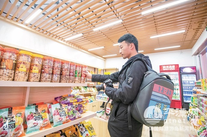 火車愛好者蘇浩在平潭站內(nèi)店鋪挑選臺(tái)灣特色產(chǎn)品(資料圖)