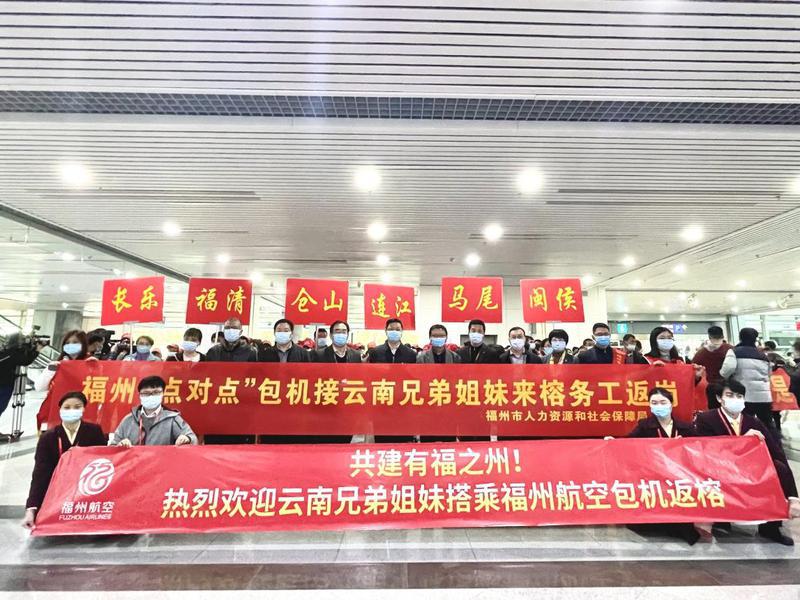 臺海網(wǎng)2月20日訊 據(jù)新福建報道 19日,海航集團旗下福州航空FU6510承載170名來自云南的務工人員旅客從昆明飛抵福州。這是今年春節(jié)后福州市首趟“點對點”包機組織輸轉(zhuǎn)中西部地區(qū)農(nóng)民工,也是云南省首趟務工返崗包機。務工人員將輸送至福州12家重點企業(yè)。該航班于當日13時56分在昆明起飛,于16時09分順利抵達福州長樂國際機場。