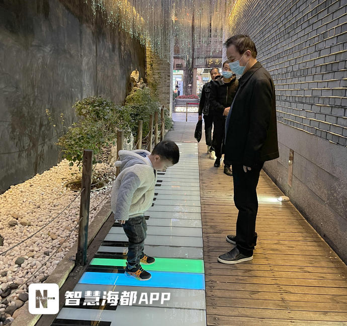 假山、流水、綠植,打造出“三山兩塔兩條江”的微型景觀;頭頂上是夢(mèng)幻般的榕須燈,入夜后七彩燈光化作北極的璀璨星河;感應(yīng)式鋼琴琴鍵,在游人經(jīng)過(guò)時(shí)發(fā)出奇妙的旋律……這就是位于南后街80號(hào)的特色景點(diǎn)——鋼琴弄。