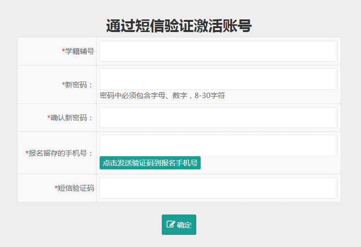 如圖3所示,在新頁面中輸入學(xué)籍輔號、新密碼、確認(rèn)新密碼及報名時所登記的手機(jī)號,選擇“點擊發(fā)送驗證碼到報名手機(jī)號”按鈕獲取驗證碼。輸入驗證碼并點擊“確定”按鈕后,即可激活賬號。然后,考生根據(jù)頁面提示,即可登錄并開始填報志愿。