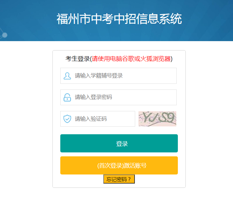 考生登錄陽光中招網(wǎng)(http://jyj.fuzhou.gov.cn/zz/zwgk/cswz/fzygzz/),點擊頁面底部“應(yīng)用系統(tǒng)鏈接”下的“中招管理系統(tǒng)”打開登錄頁面。