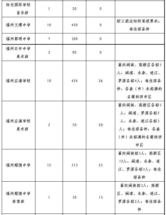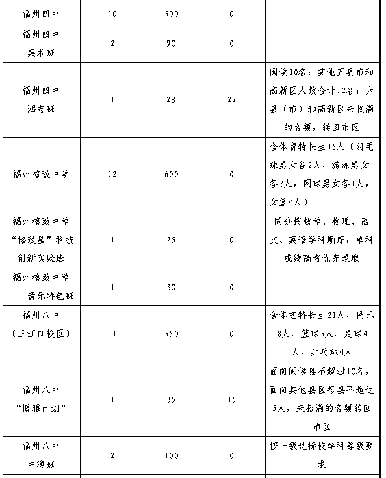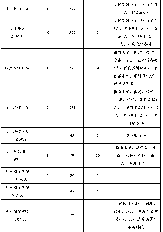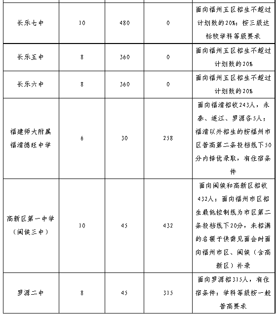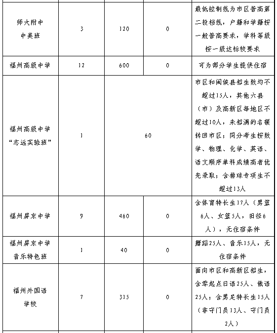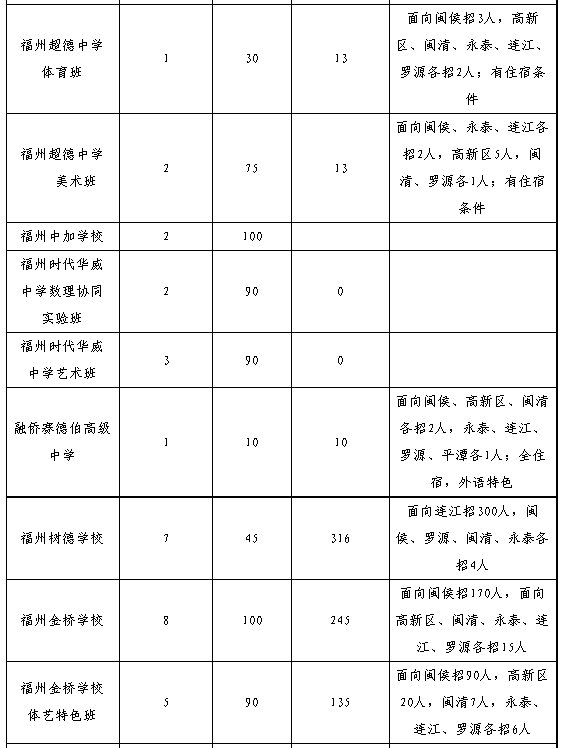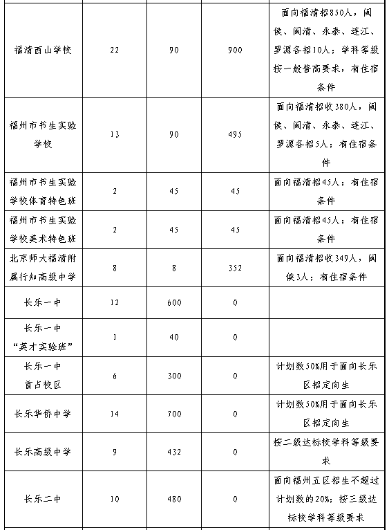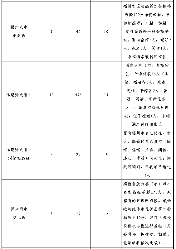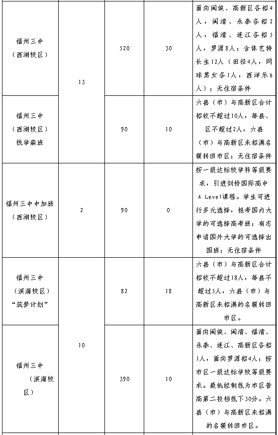 4.招生區(qū)域“縣(市)”僅福州一中、師大附中兩所學校指六縣(市)及平潭,其余學校指福州的六個縣(市)。