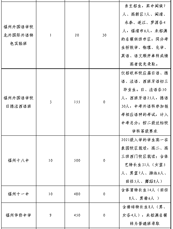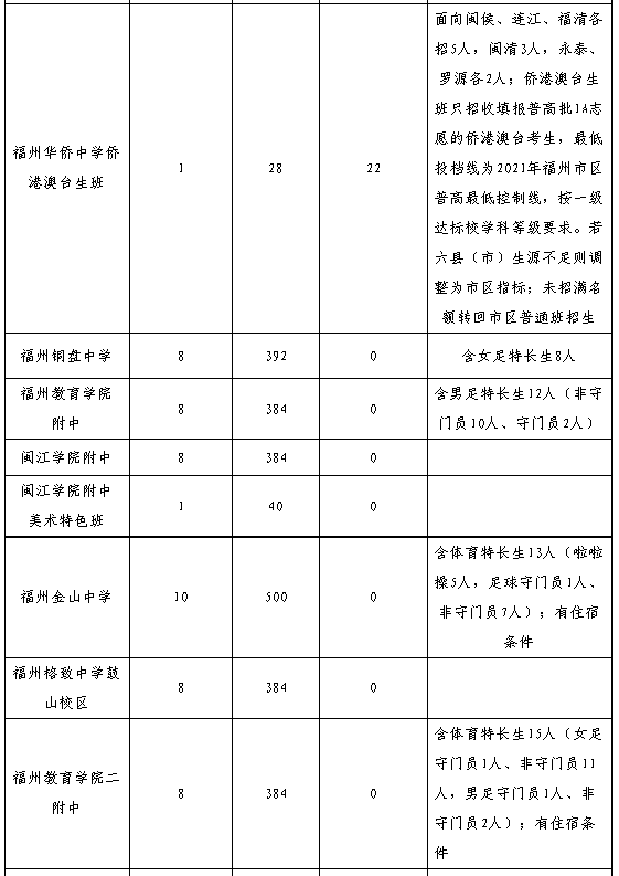 2.體育、藝術特長生人數(shù)詳見榕教綜〔2021〕22號、34號文件。