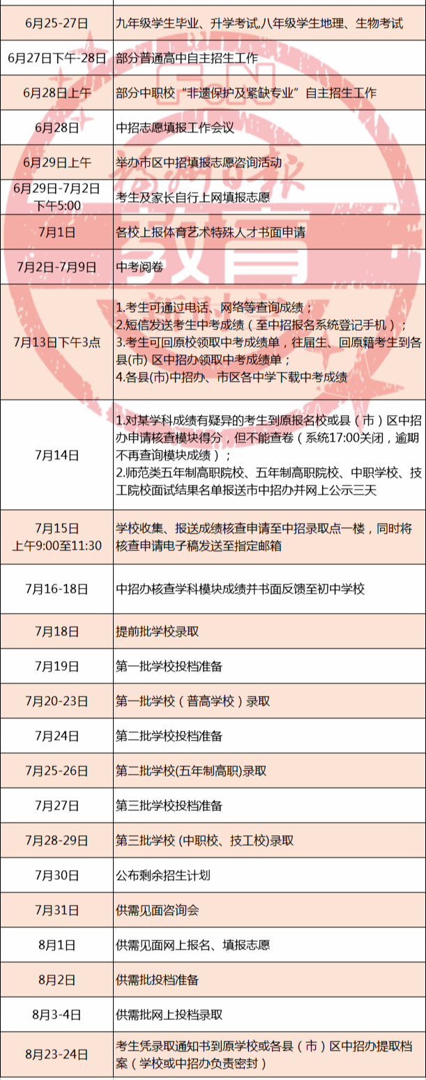 2021年福州市中考(中招主要日程安排)