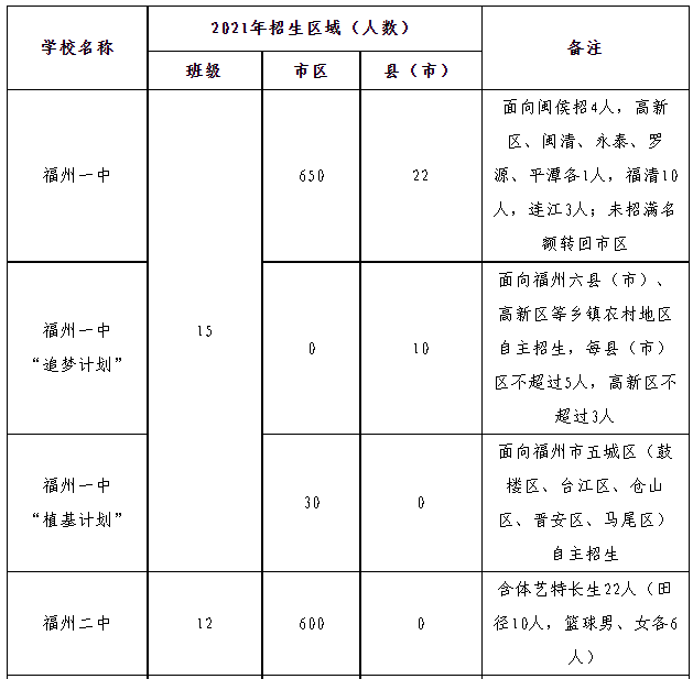 為規(guī)范普通高中招生工作,促進普高與職校協(xié)調(diào)發(fā)展,根據(jù)2021年福州市區(qū)初中畢業(yè)班生源數(shù)量情況以及各區(qū)、各校實際情況,現(xiàn)下達普通高中招生計劃如下: