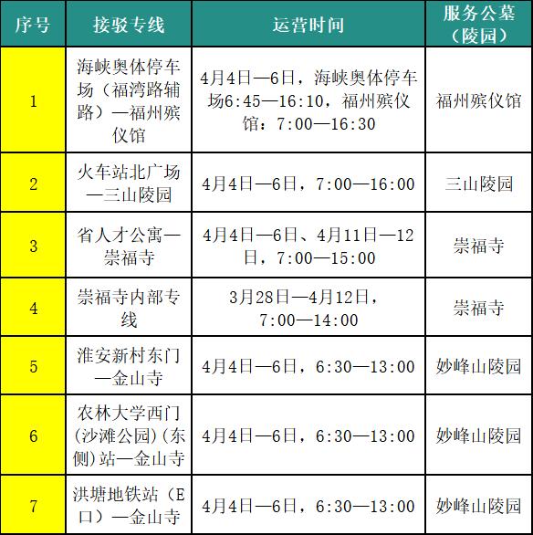 2.增開免費(fèi)區(qū)間接駁專線。4月4日—6日,增開海峽奧體停車場(福灣路輔路)直達(dá)福州殯儀館的區(qū)間接駁專線,運(yùn)營時(shí)間:海峽奧體停車場6:45—16:10,福州殯儀館:7:00—16:30。