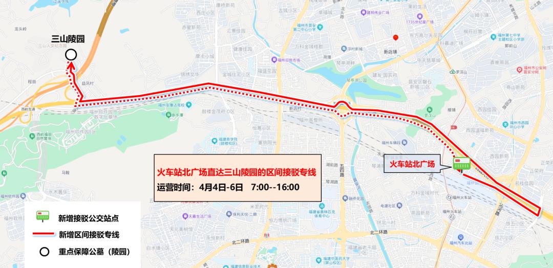 2.增開免費(fèi)區(qū)間接駁專線。4月4日—6日,增開火車站北廣場直達(dá)三山陵園的區(qū)間接駁專線,運(yùn)營時(shí)間為7:00—16:00。